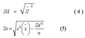 Sd- desviación estándar del proceso de aserrado dentro de las piezas (mm.); Se- desviación estándar del proceso de aserrado entre piezas, mm.