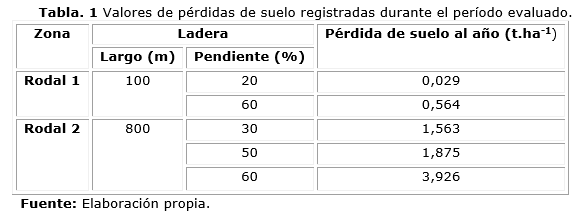 Los resultados y su posterior análisis demuestran que las pérdidas de suelo fueron mayores en superficies de mayor pendientecon laderas de extensión mayor a 150 m de largo, en suelos de muy alta fragilidad.
