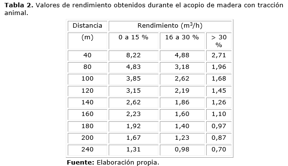 Esta mejora, en la obtención de alimento para el ganado, puede aumentar el tiempo de trabajo operativo a 4 h, valores que coinciden con los resultados obtenidos por Cordero (1995) en la extracción de trozas con yuntas de bueyes en Costa Rica; por otra parte, Malagón (2009) llegó a la conclusión de que este tiempo perdido se redujo en un 40% donde se utilizan forrajes de caña y King grass almacenados en la propia área de trabajo.