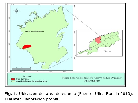 La investigación se realizó en la localidad del Tibisí (Unidad Silvícola Santa Lucía), de la Empresa Forestal Minas de Matahambre, Pinar del Río, Cuba, en bosques de pinares y de galería (Figura 1). Esta es un área montañosa que se caracteriza por el predominio de pinares, los cuales se encuentran estrechamente relacionados con el bosque latifolio en galería. El área de la localidad está distribuida de la siguiente forma: plantación de Pinuscaribaea var. caribaea(369.9 ha), bosque de pinos, asociación natural con predominio en el estrato arbóreo de pino y encino (65 ha), bosque latifolio en galería (464 ha) y bosque de pinos (Pinustropicalis) (865,1 ha); para un total de la (1763.7 ha). Los muestreos se realizaron en las cuatro áreas boscosas.