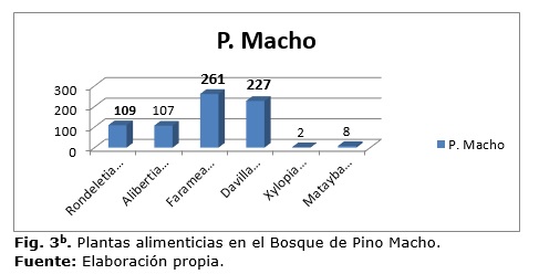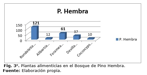 En los resultados se aprecia, además, que especies como Davilla rugosa y Farameaoccidentalisse repiten en tres de las cuatro formaciones vegetales (bosque de galería, pino hembra y pino-encino). Ambas especies son abundantes durante todo el año en estas áreas boscosas y se caracterizan por presentar un amplio follaje y brotes tiernos, todo lo cual contribuye a proveer de alimento al venado cola blanca.