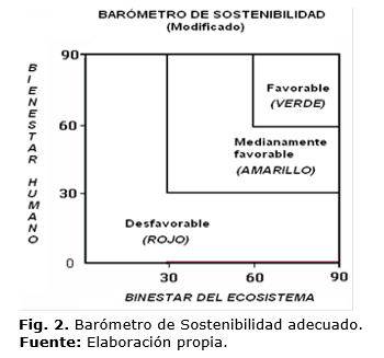 Esta propuesta permitevisualizar la valoración integral de la tendencia a la sostenibilidad de un sistema dado, desde la perspectiva de la interpolación de los resultados para los Índices de Bienestar,que destaca, por tanto, cuál es el subsistemade mayor influencia sobre la sostenibilidad.