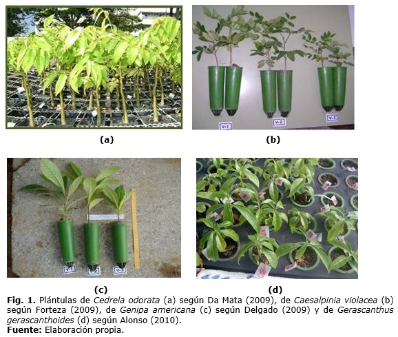 La figura 1, muestra de forma clara, el crecimiento y desarrollo de las posturas de diferentes especies forestales estudiadas más recientemente con el empleo de sustratos donde predominan componentes orgánicos.