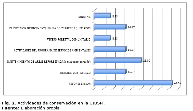 Con las actividades de conservación, que duran por lo menos seis meses al año, se da empleo como jornaleras y jornaleros en trabajos del bosque a un total de 80 personas de la comunidad (30 mujeres y 50 hombres), de acuerdo a la figura2: