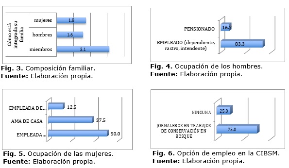 Los datos arrojados por las encuestas y entrevistas, acerca de la composición familiar y ocupaciones por género, se encuentran en las figuras 3, 4, 5 y 6: