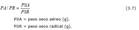 Es la producción de materia seca concentrada en las raíces respecto al total de la planta y es determinada de la forma siguiente: