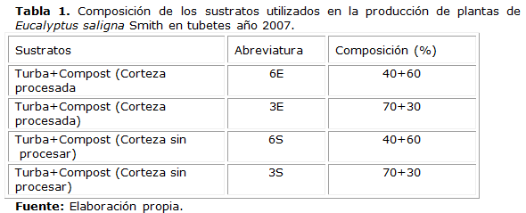 Los sustratos utilizados para el llenado de los tubetes se muestran en la Tabla I